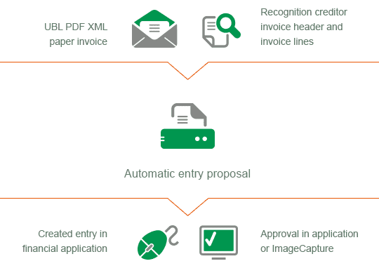 ImageCapture for Invoices is intelligent scanning and recognition software (OCR) that easily allows you to digitally enter and process digital and paper invoices on your accounting system.